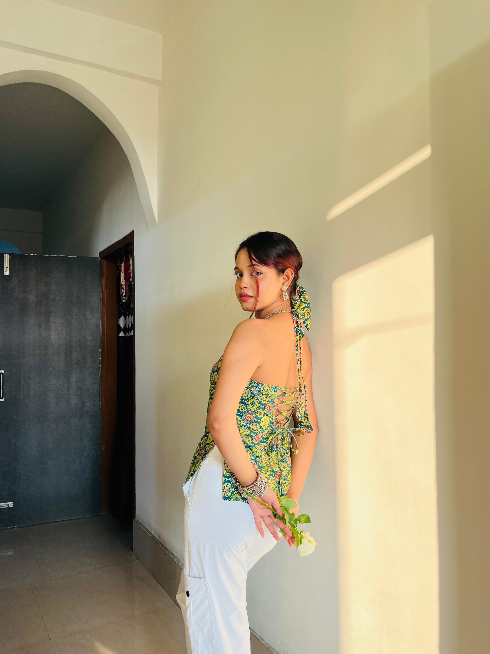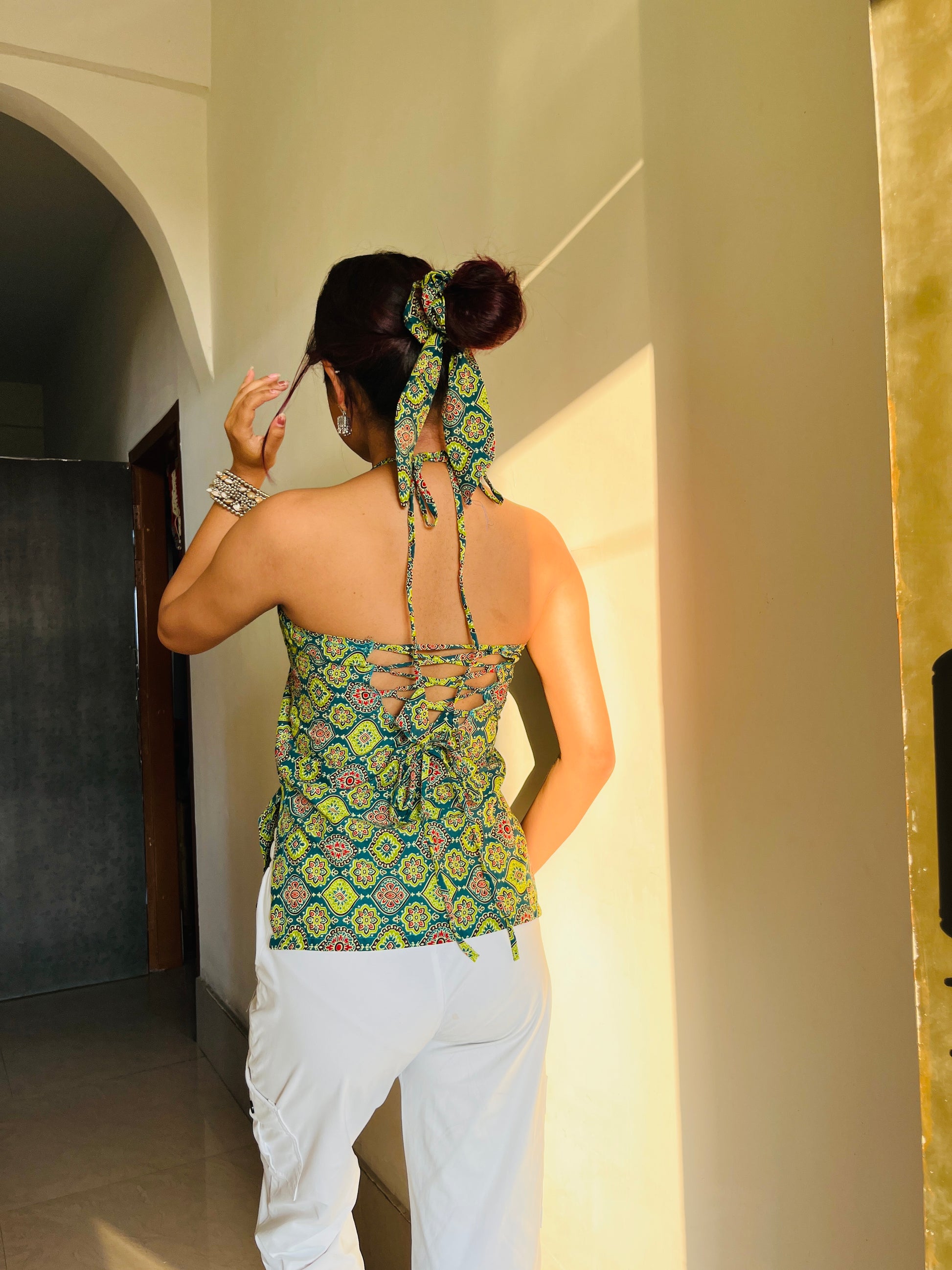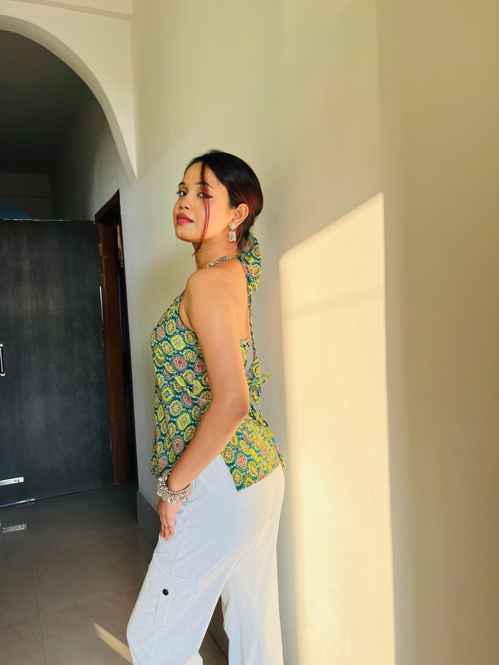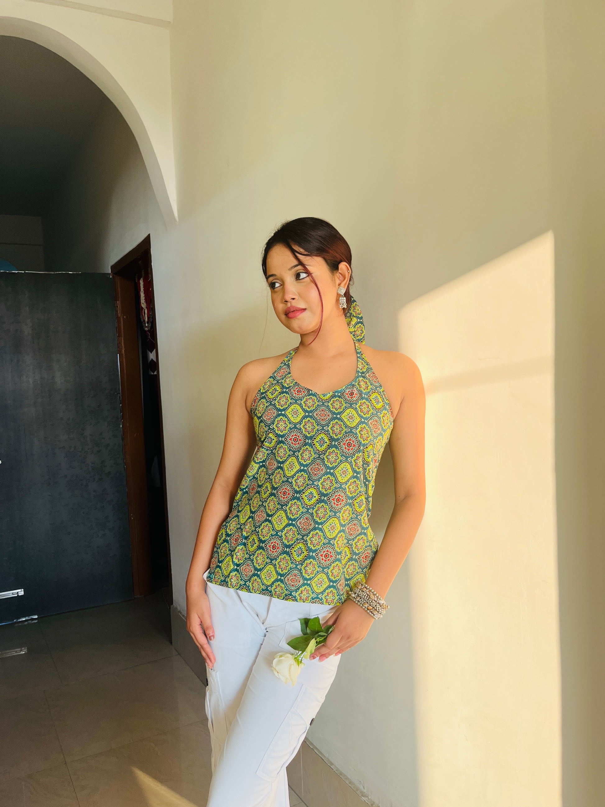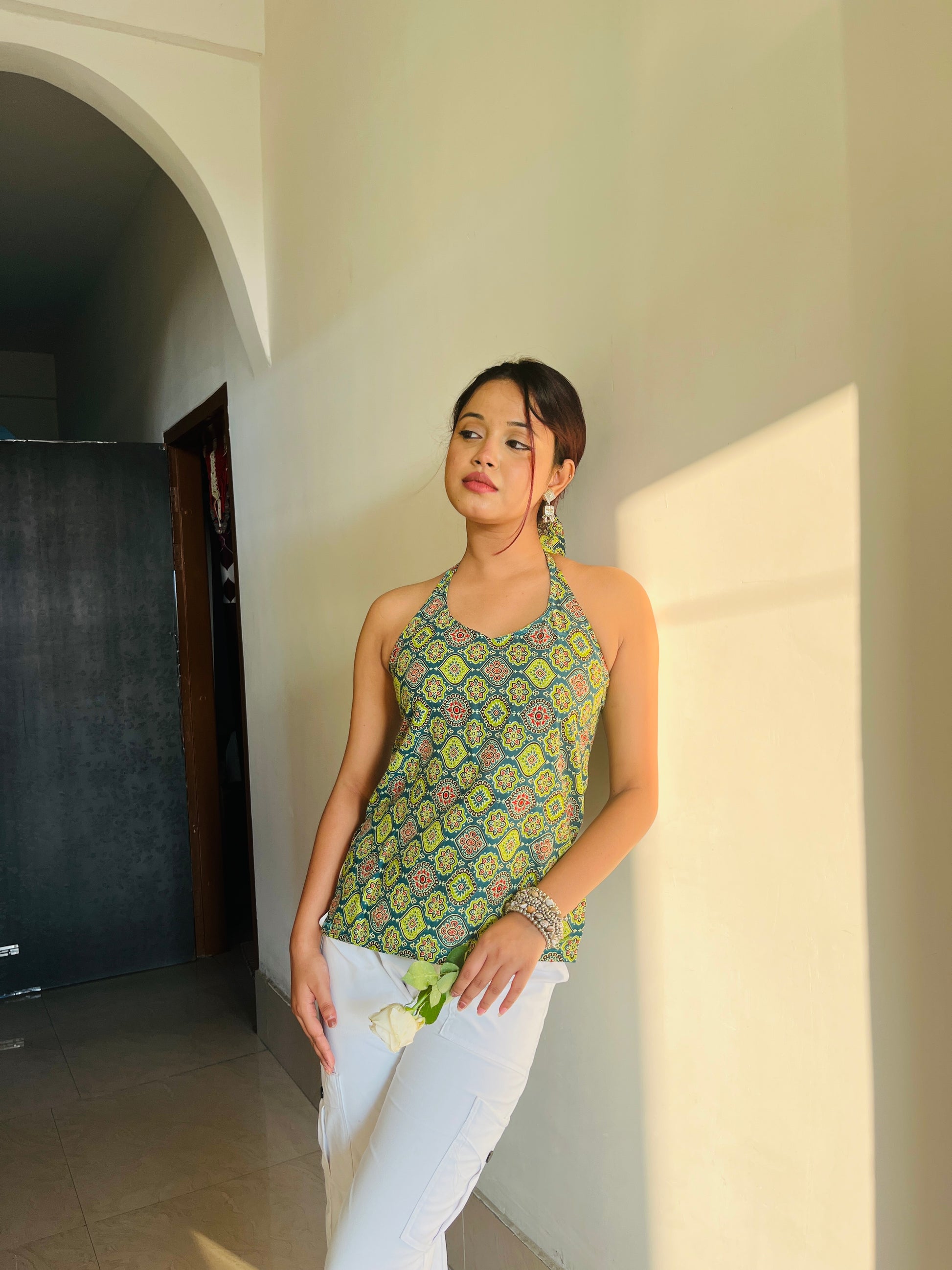 Fabric: Cotton Blend | Neck: Halter | Occasion : semi-formal